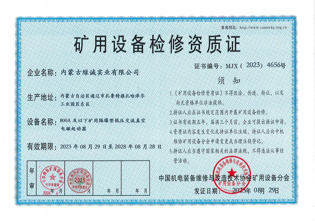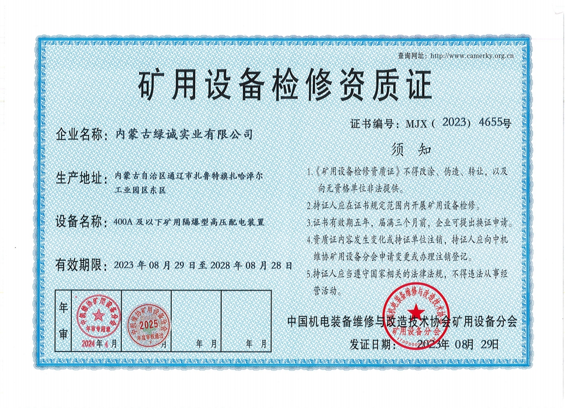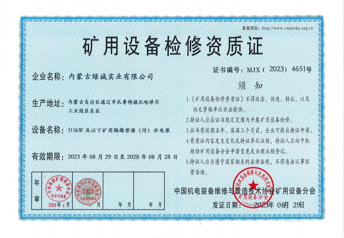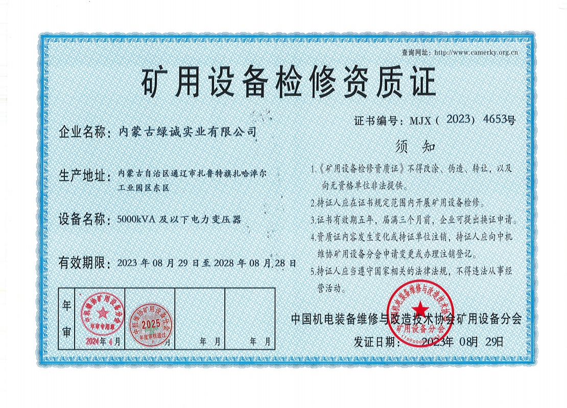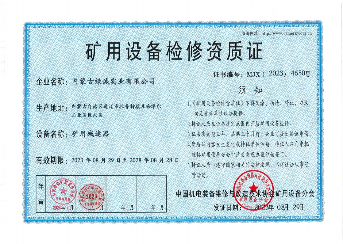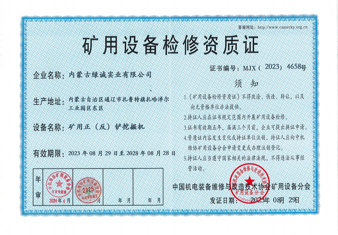 2018年我公司通過中國機(jī)電裝備維修與改造技術(shù)協(xié)會(huì)礦用設(shè)備分會(huì)審核并取得了9項(xiàng)礦用設(shè)備檢修資質(zhì)證書。公司本著“誠信為本 質(zhì)量為先 全心全意為客戶 ”的服務(wù)理念,圓滿完成各個(gè)廠礦的機(jī)械維修及配套服務(wù),期待與您共同合作。